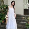 Váy dài màu trắng kiểu Pháp, váy yếm mùa hè