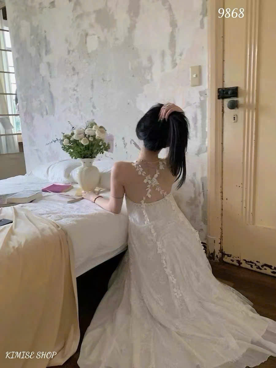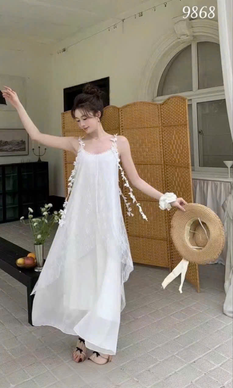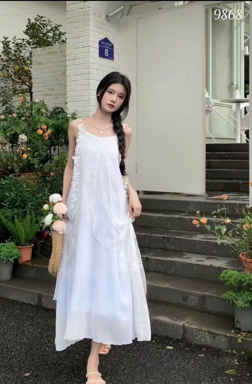 Đánh giá Váy dài màu trắng kiểu Pháp, váy yếm mùa hè